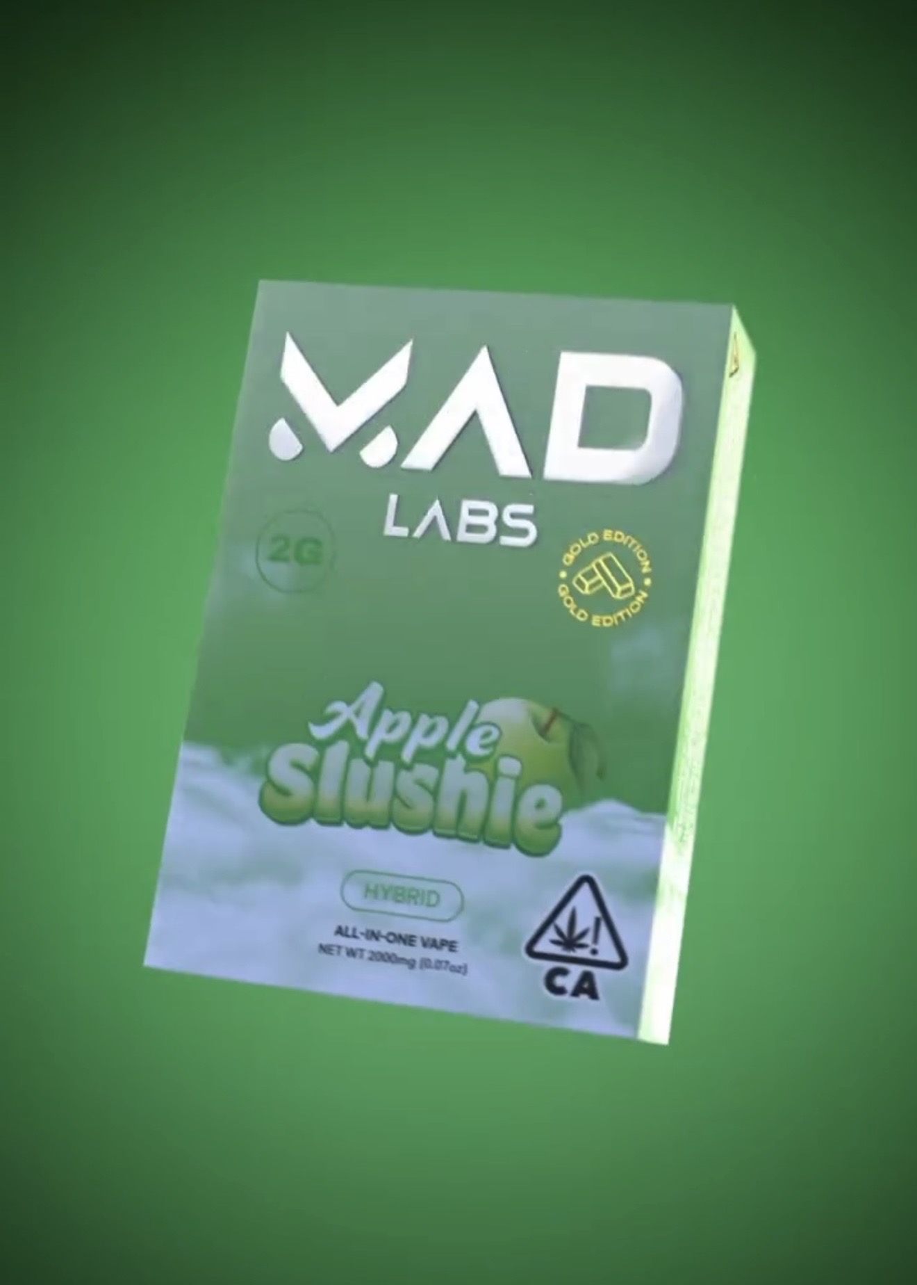 The Apple Slushie Mad Labs Disposable 2G is designed to provide a refreshing and indulgent experience, capturing the sensation of enjoying a cold, fruity beverage while offering the effects of high-quality cannabis extract. The combination of crisp apple notes and icy undertones creates a layered, enjoyable vaping session that stimulates the senses and satisfies flavor enthusiasts.